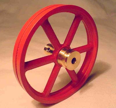 Pieza N° 132 Volante"FLYWHEEL" 70mm (2 ¾") diám, 6 rayos, cubo latón con polea integral 13mm (½") diám,peso en gramos 120.